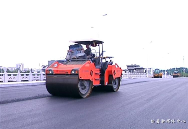 在总投资6000万元的丰乐河大桥的施工现场,数台机械正在进行作业,沥青摊铺机有序地将沥青砂石摊铺在路面,压路机及施工人员相互配合,呈现出一派热火朝天的大干景象。“丰乐河大桥项目现在正在进行面层施工,几天后面层施工将全部结束。六月底前项目将实现通车,连接紫阳路和歙州大道,可以缓解县城内部的交通压力。”项目现场负责人何宏旺说。