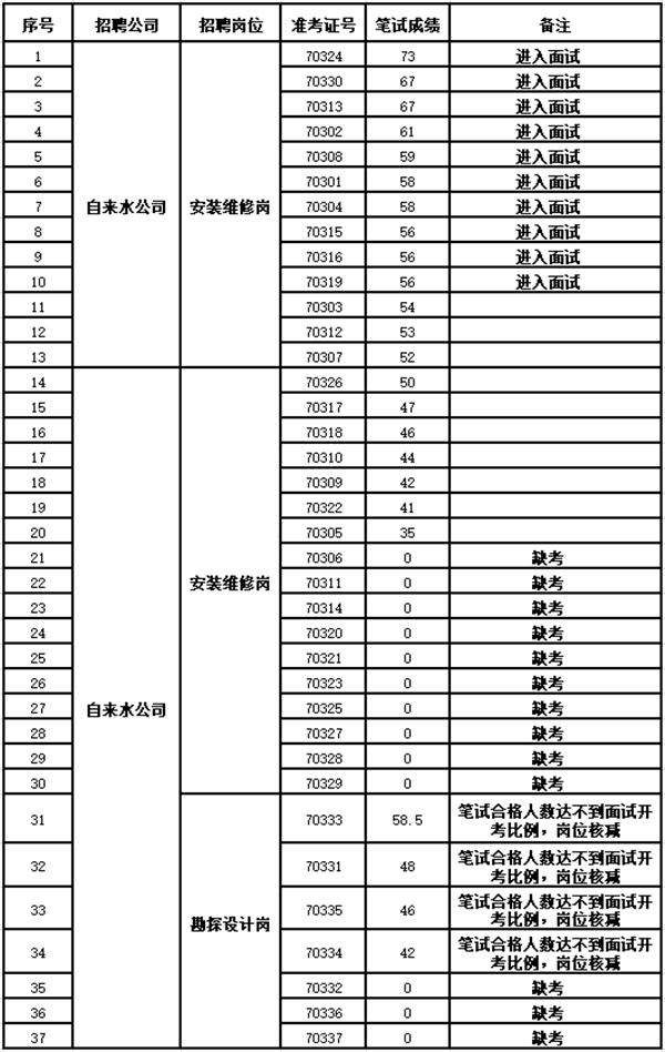 根据《黄山徽投集团下属子公司招聘员工考试公告》,笔试工作已于2020年3月29日上午结束,现将笔试成绩及进入面试人员名单公布如下: