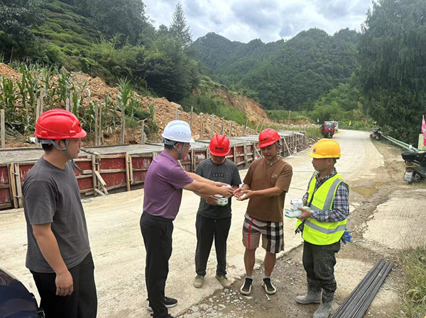 公司主要负责人带队深入大牛山项目、石潭停车场项目、深渡75号民宿等项目施工现场,将装有清凉油、藿香正气水、防暑用品的“清凉礼包”送到工友手中。“大家辛苦了!一定要注意防暑降温,合理调整作业时间”。在检查和慰问过程中仔细询问工人们的高温作业安排,叮嘱项目管理人员严格落实“做两头、歇中间”的避高温措施,确保现场绿豆汤、盐汽水等防暑饮品供应充足。
